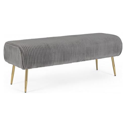 Struttura in MDF e compensato. Gambe in acciaio cromato color oro. Rivestimento in Poliestere effetto velluto a coste. Densità imbottitura 30kg/m3