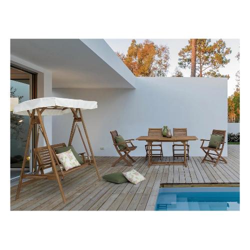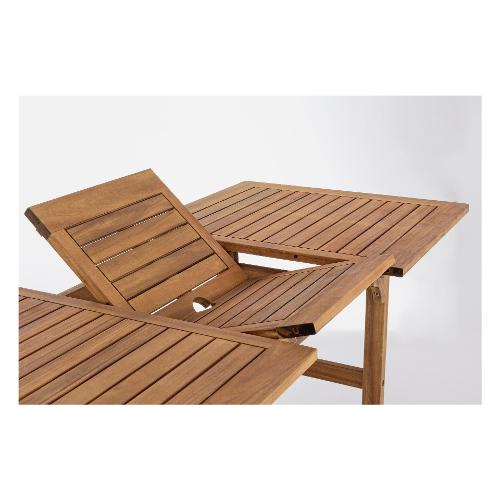 Struttura in legno di acacia con finitura ad olio. Ferramenta in acciaio galvanizzato. Allungabile. Barre di scorrimento in plastica