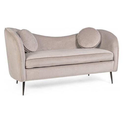 Struttura in legno di pino e compensato. Gambe in acciaio verniciato a polvere epossidica. Rivestimento non sfoderabile in Poliestere effetto velluto, 2 cuscinetti sfoderabili. Imbottitura in schiuma poliuretanica, densità schienale 18kg/m3 seduta 28 kg/m3