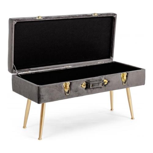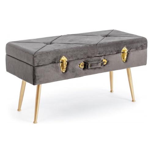 Struttura in MDF. Gambe in acciaio verniciato color oro. Rivestimento in Poliestere effetto velluto. Densità imbottitura 30kg/m3
