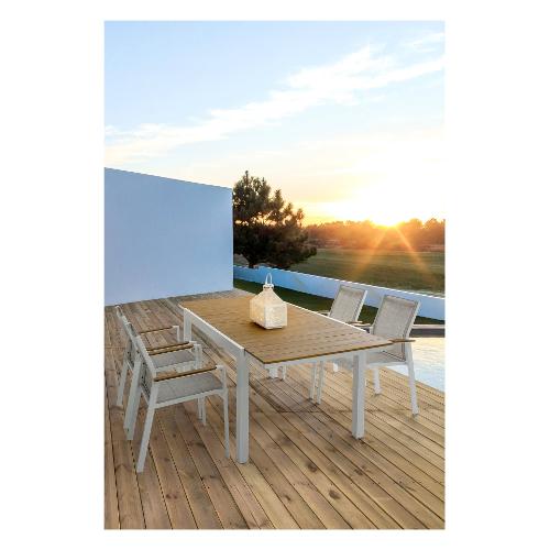 Tavolo da esterno alluminio ELIAS Allungabile Teak e Bianco (140-200x90x75cm) 0662823