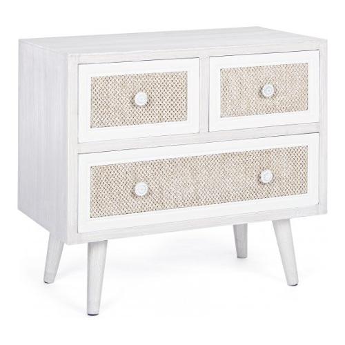 MONTIEL Cassettiera 3 Cassetti Bianco e Lino (60cm) Mobile KIT