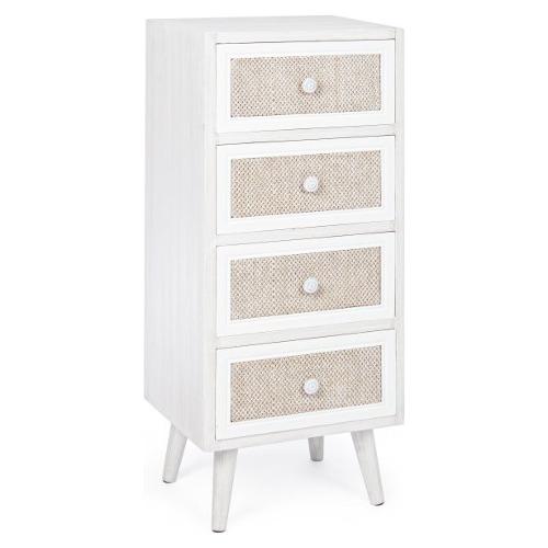 MONTIEL Cassettiera 4 Cassetti Bianco e Lino (40cm) Mobile KIT