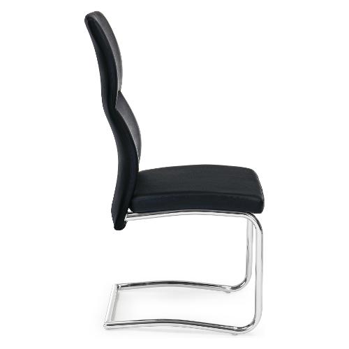 Struttura in acciaio. Gambe cromate. Imbottitura in schiuma poliuretanica. Rivestimento in similpelle