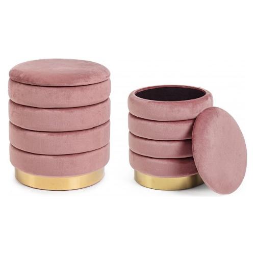 Struttura in MDF e compensato. Rivestimento in Poliestere effetto velluto. Densità imbottitura 30kg/m3. Fondo con anello decorativo in acciaio verniciato color oro