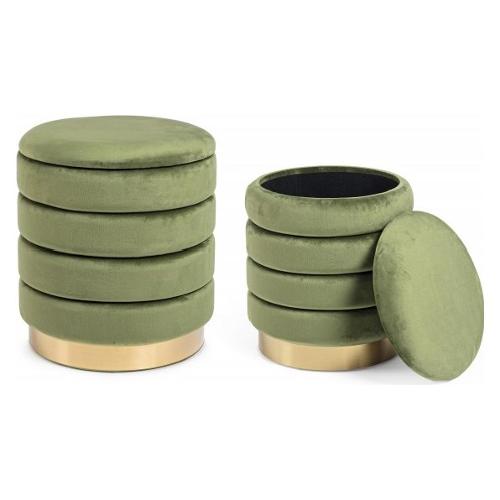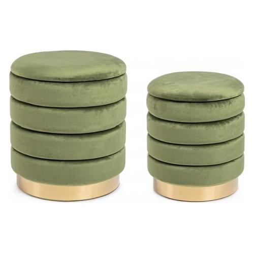 Struttura in MDF e compensato. Rivestimento in Poliestere effetto velluto. Densità imbottitura 30kg/m3. Fondo con anello decorativo in acciaio verniciato color oro