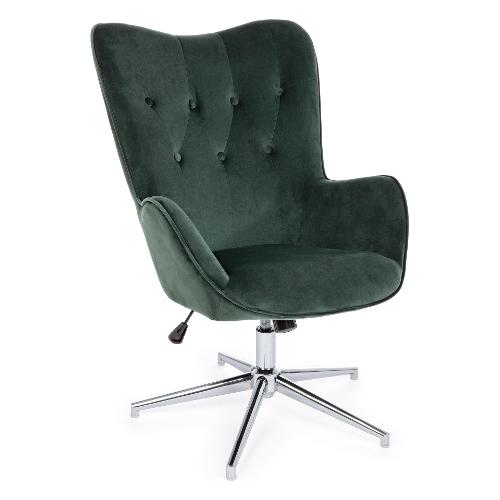 Struttura e base in acciaio cromato. Imbottitura in schiuma poliuretanica densità 28 kg/m3. Rivestimento in velluto (100% Poliestere). Altezza regolabile