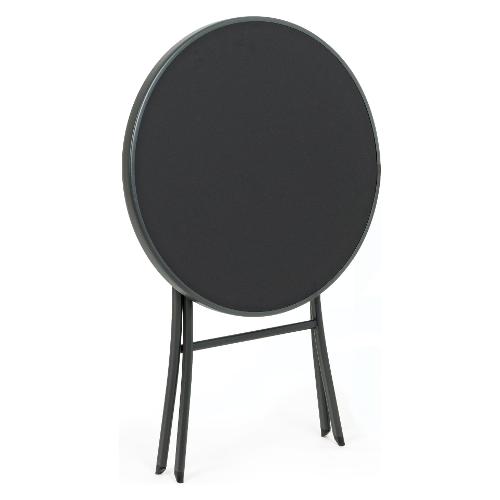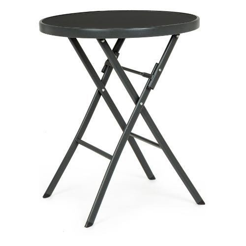 Struttura in acciaio, trattata per l'esterno tramite sabbiatura e verniciata a polvere epossidica. Piano in vetro temperato (5 mm)