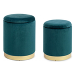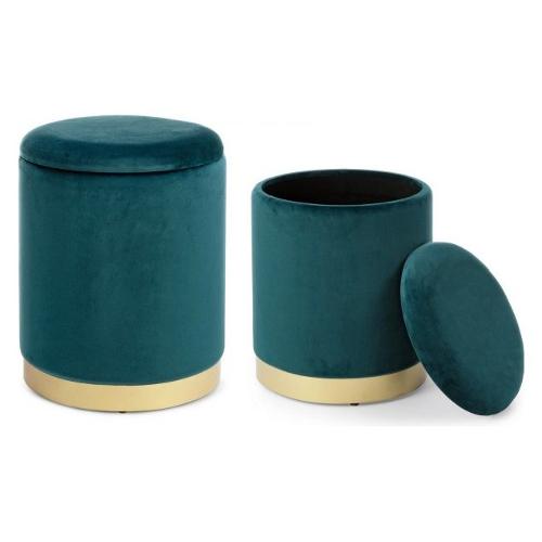 Struttura in MDF e compensato. Rivestimento in Poliestere effetto velluto. Densità imbottitura 30kg/m3. Fondo con anello decorativo in acciaio verniciato color oro