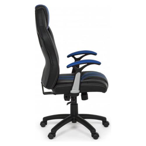 Base in nylon Ø 60 cm. Ruote in nylon. Seduta e schienale imbottiti e rivestiti in similpelle. Schienale provvisto di supporto lombare. Braccioli in acciaio verniciato a polvere con rivestimento in similpelle. Altezza regolabile e schienale reclinabile fino a 130° con block system