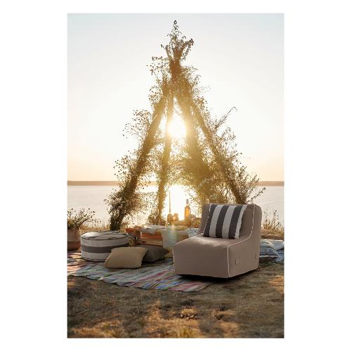 Fodera cuscino in spun Poliestere 200 gr/mq, sfoderabile con cerniera a scomparsa. Idrorepellente. Resistente ai raggi uv iso 7. 0. Fodera interna in tnt. Imbottitura in Polipropilene 400 gr/mq