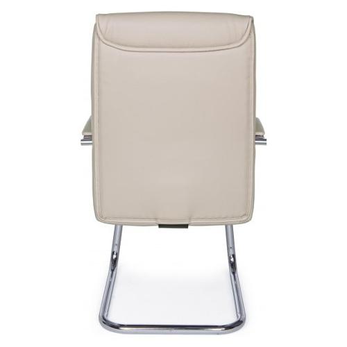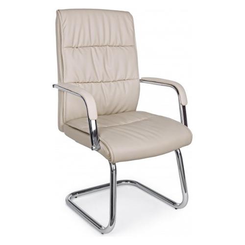 Slitta in acciaio cromato. Seduta e schienale imbottiti e rivestiti in similpelle. Braccioli in acciaio cromato con rivestimento in similpelle
