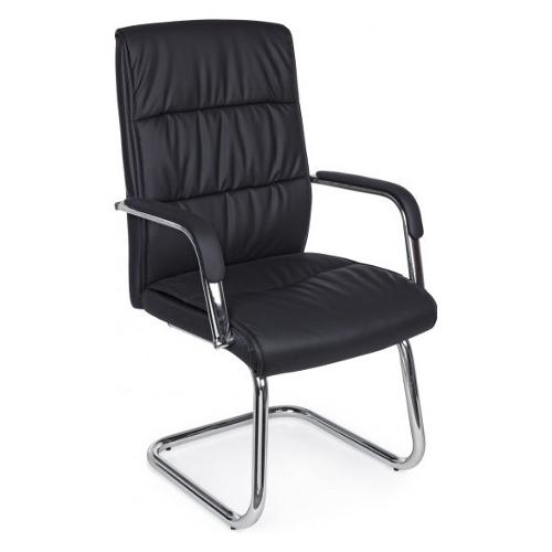 Slitta in acciaio cromato. Seduta e schienale imbottiti e rivestiti in similpelle. Braccioli in acciaio cromato con rivestimento in similpelle
