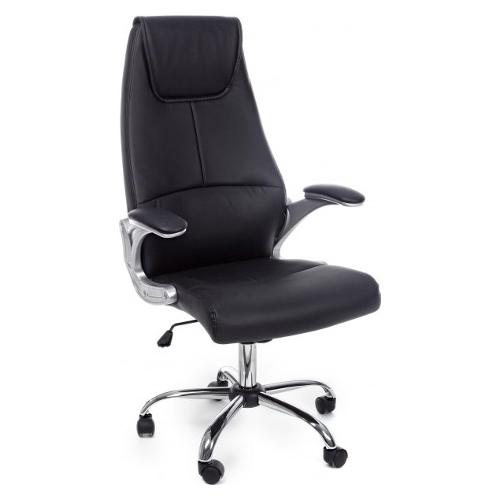Base in acciaio cromato Ø 60 cm. Ruote in nylon. Seduta e schienale imbottiti e rivestiti in similpelle. Braccioli in plastica (pp) con parte superiore rivestita in similpelle. Altezza regolabile