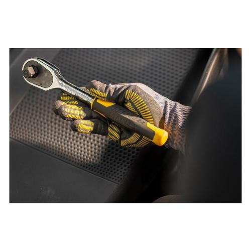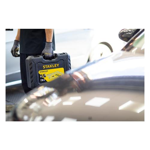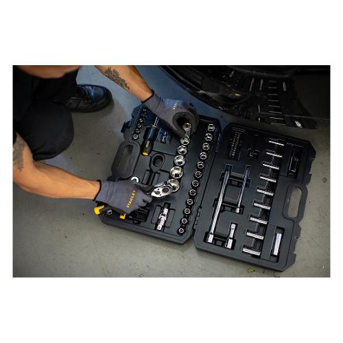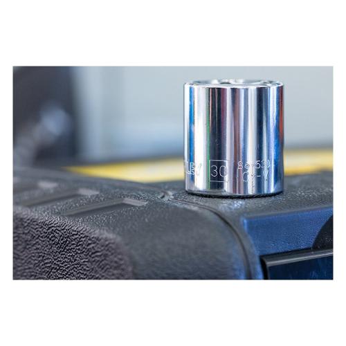 Contenuto: 1 cricchetto att. 1/4" a 72 denti, 10 chiavi a bussola esagonali finitura pulita att.1/4" (5,5-6-7-8-9-10-11-12- 13-14 mm), 9 chiavi a bussola esagonali lunghe finitura pulita att.1/2" (6-7-8-9-10-11-12-13-14 mm), 2 prolunghe att.1/4" mm.75 e 125, 1 snodo universale att.1/4", 1 bussola porta inserti att.1/4", 1 portainserti att.1/4", 22 inserti att.1/4” (pz 1-2-3, ph. 1-2-3, esag. 3-4-5-6-7 mm, torx 10-15-20-25-27-30-40, std 4-5-6-7 mm), 1 cricchetto att.1/2" a 72 denti, 19 chiavi a bussola esagonali finitura pulita att.1/2" (8-10-11-12-13-14-15- 16-17-18-19-20-21-22-23-24-27-30-32 mm), 2 chiavi a bussola per candele att.1/2" mm 16 e 21, 2 prolunghe att.1/2" mm 75 e 250, 1 snodo universale att.1/2". Valigetta in mat.sintetico con chiusure in metallo