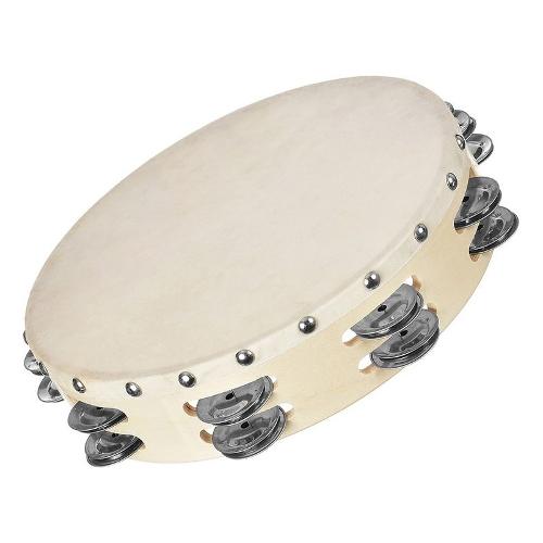 Tamburello in legno, 16 paia di piattini su due file. Diametro cm 25,4