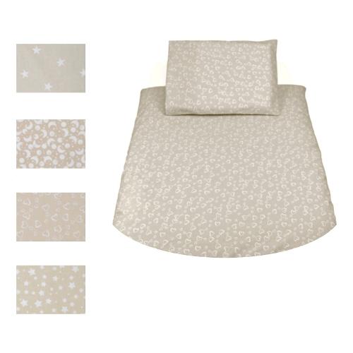 Il set comprende lenzuolino con angoli da sotto55 x 87 x 5 cm; federa; copripiumino sfoderabile 60 x 75 cm; interno piumino in morbida fibra 60 x 75 cm. Tessuto cotone certificato oeko tex standard 100. Compatibile con tutte le culle d'avvicinamento o fianco letto.