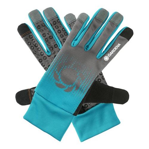 Il giardinaggio è ancora più piacevole con i guanti da giardino e manutenzione di gardena. Questo guanto perfettamente aderente è dotato di molte caratteristiche innovative che facilitano i lavori di giardinaggio leggero e la cura delle piante, come invasare fiori e piante da letto. È adatto per la potatura e la pulizia delle foglie. Il rivestimento in silicone sul palmo della mano dà una grande presa, in modo da avere sempre tutto sotto controllo, il che è particolarmente utile. La parte principale del guanto è costituita da un materiale a rete flessibile e traspirante. Questo è un grande vantaggio, soprattutto durante l'uso prolungato, perché le mani non inizieranno a sudare eccessivamente. Il guanto è dotato di micropile assorbente per il sudore. Si ottiene una perfetta vestibilità grazie al materiale flessibile sul polsino e sul dorso della mano. Se vuoi usare il tuo smartphone o tablet mentre fai giardinaggio, questo non è affatto un problema. Le punte dell'indice e del pollice del guanto per mani grandi hanno la pratica funzione mobile touch per smartphone , così non è necessario togliere il guanto per utilizzare il tuo dispositivo. Inoltre, il guanto da giardino ha ottenuto la certificazione oeko-tex® standard 100, il che significa che i tessuti utilizzati sono privi di sostanze nocive.