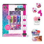 Contiene: 3 anelli, 3 tubetti di lucidalabbra da mescolare, 1 bustina di glitter, 1 palettina per mescolare, 1 foglio di gemme adesive e tante soggetti 3D colorate per decorare l’anello.