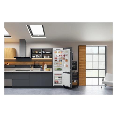 Caratteristiche di questo frigorifero combinato da incasso Hotpoint: modello alto e capiente, adatto per le esigenze di tutta la famiglia. Colore bianco. Ripiani in vetro, robusti ed eleganti al tempo stesso. Flusso d’aria regolare e uniforme all’interno dell'elettrodomestico, per una ventilazione potenziata. Comodo porta-bottiglie per conservare le bottiglie con sicurezza.