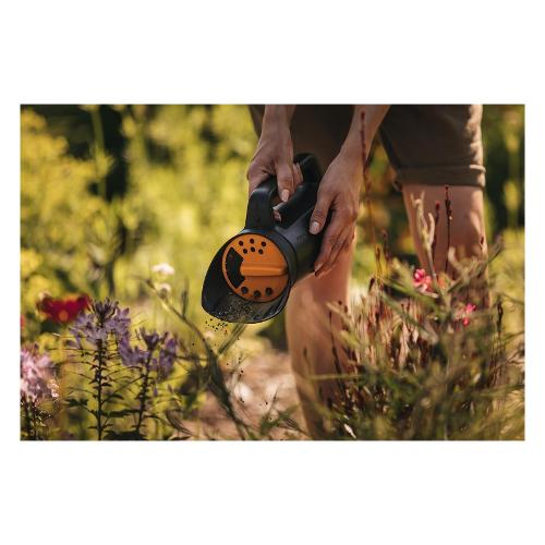 Il pratico spargitore in plastica rinforzata in fibra di vetro permette di spargerre con precisione sabbia, sale, fertilizzante e tanto altro da usare su fioriere, vasi, aiuole o serre. La manopola facile da ruotare permette di regolare le dosi secondo tre incrementi. Inoltre, l'easy lock system permette di riempire facilmente lo spargitore. La testa e il corpo dello strumento possono essere separati per facilitare la pulizia.