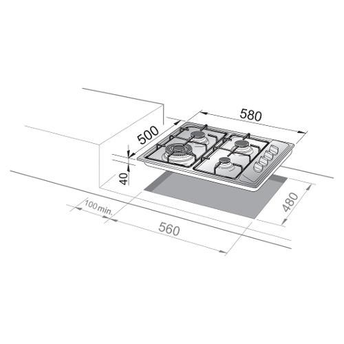 Piano ad incasso a gas da 60 cm con griglie in piattina smaltata e comandi laterali. Dal punto di vista delle misure, è il modello più utilizzato in cucina. Grazie a misure sobrie ed equilibrate, questo piano risulta essere la scelta ideale in tutti quei contesti in cui gli spazi ristretti obbligano a misure più contenute.