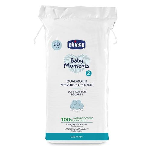 I quadrotti chicco della linea baby moments, fatti di cotone puro al 100%, accarezzano delicatamente la pelle del bambino e rimuovono le impurità, senza lasciare residui.