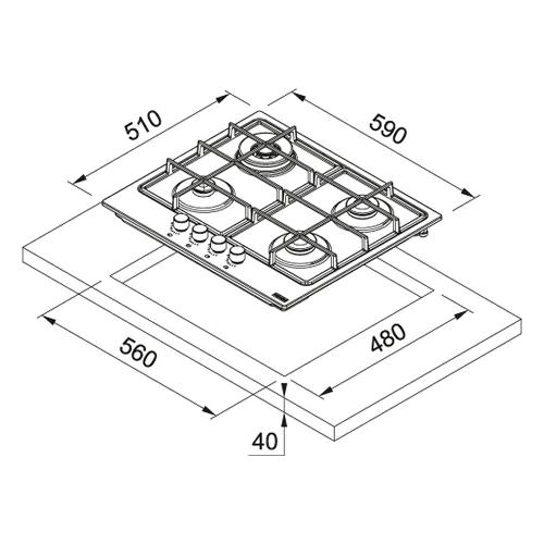 Piano cottura gas 4 zone SMART Fhsm 604 3G Dc Xs C Inox (60cm)