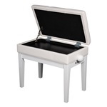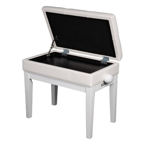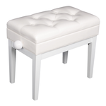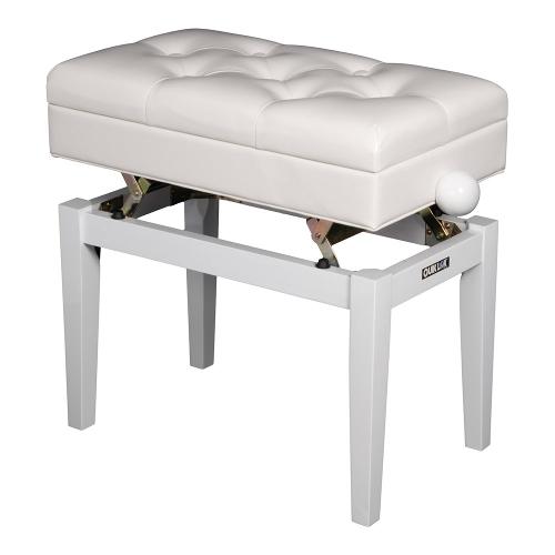 La panca in legno per pianoforte PB/106 si presenta con un look elegante donato dalla finitura nera lucida e dall'abbondante imbottitura in gommapiuma da 5,5 cm della seduta rivestita in ecopelle nera con effetto bottolato con bottoni capitonné. La panchetta è regolabile in altezza da un minimo di 46 cm fino ad un massimo di 55 cm da terra. La seduta in ecopelle ha una larghezza di 55 cm ed è profonda 33 cm ed è apribile trasformando la panca in un comodo porta oggetti in cui riporre ad esempio i propri spartiti.