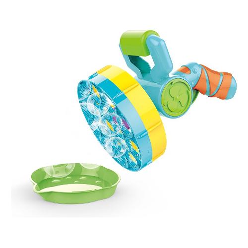 Multi bolle di sapone contiene un flaconcino da 118 ml di soluzione, una pistola e due dischi intercambiabili per dare forme diverse alle tue bolle.