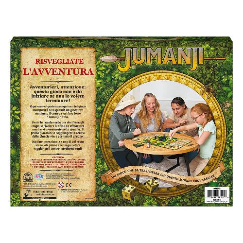 Chi non ha mai desiderato giocare in prima persona al famoso gioco da tavolo di ‘jumanji’? Ora è possibile! Ispirata al film oiginale uscito nel 1995, questa esclusiva edizione del gioco, che nella pellicola creò il panico in città, con creature venute da un’altra dimensione grazie al tiro dei dadi da parte dei protagonisti, conquisterà appassionati e nuove generazioni! L’obiettivo è quello di raggiungere per primo il centro del tabellone, lanciando il dado, smarcando il rinoceronte e decodificando i messaggi segreti sulle carte. Attenzione! Se iniziate a giocare dovete finire! Da 2-4 giocatori