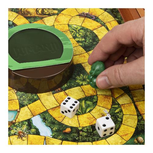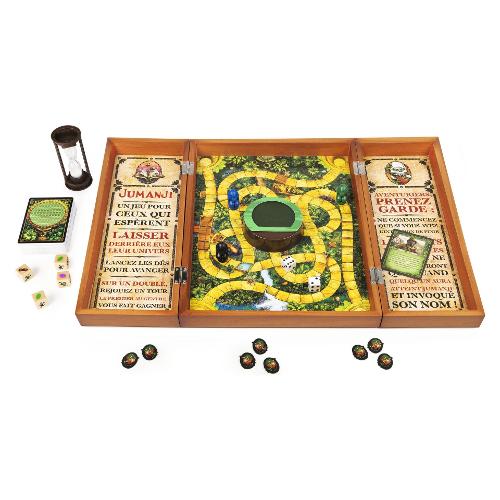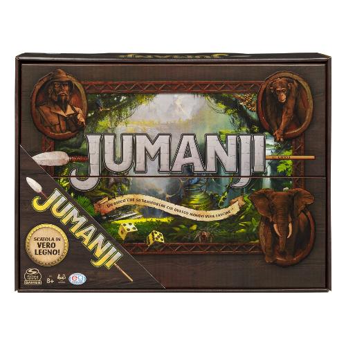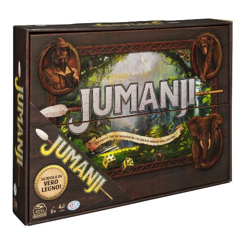Una versione in legno pregiato identica in tutti i dettagli al gioco originale protagonista del mitico film uscito nel 1995, jumanji conquisterà appassionati e non! L’obiettivo è quello di raggiungere per primo il centro della plancia, lanciando il dado e decodificando i messaggi segreti contenuti sulle carte. Attenzione! Se iniziate dovete finire. La confezione contiene: una scatola in legno a modi scrigno all’nterno della quale è raffigurata la plancia di gioco, 1 rinoceronte 3d in plastica, 4 pedine in legno, 1 clessidra, 1 dado numerato, 4 dadi salvataggio, 30 carte pericolo, 1 decodificatore, 1 foglio adesivi, 1 istruzioni. Da 2-4 giocatori.