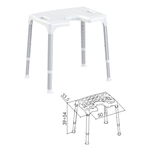 La seduta in tecnopolimeri, finitura antiscivolo, forata per permettere il deflusso dei liquidi, ne consente l’utilizzo anche sotto la doccia.