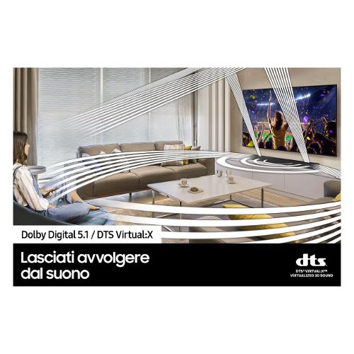 Innalza la tua esperienza audio con 3D surround sound e altoparlante centrale incorporato.