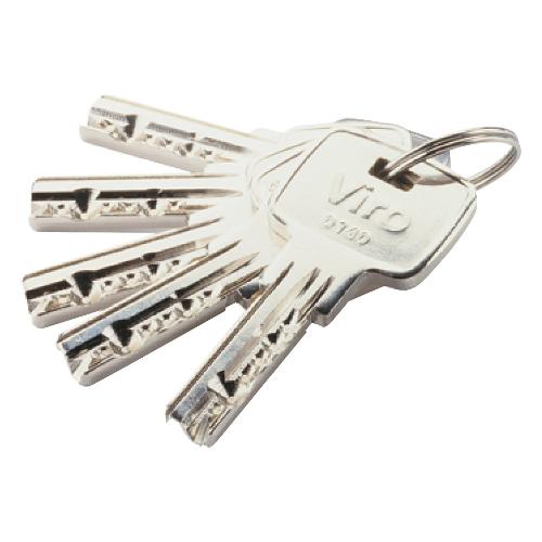 Include 5 chiavi piatte reversibili in ottone nichelato, vite di fissaggio a passo metrico sezionabile
