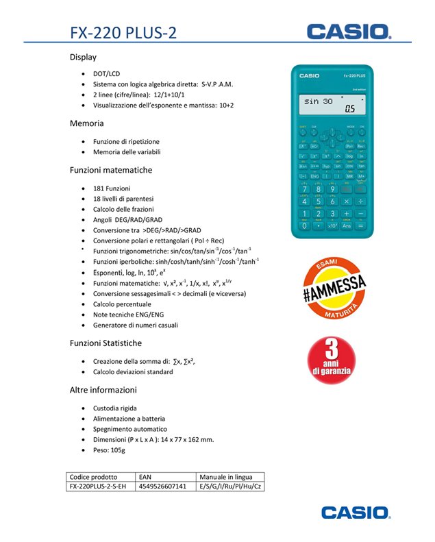 La matematica è più facile: la nuova calcolatrice tecnico-scientifica FX-220 PLUS-2 si presta a diverse applicazioni e risolve velocemente i calcoli più difficili.