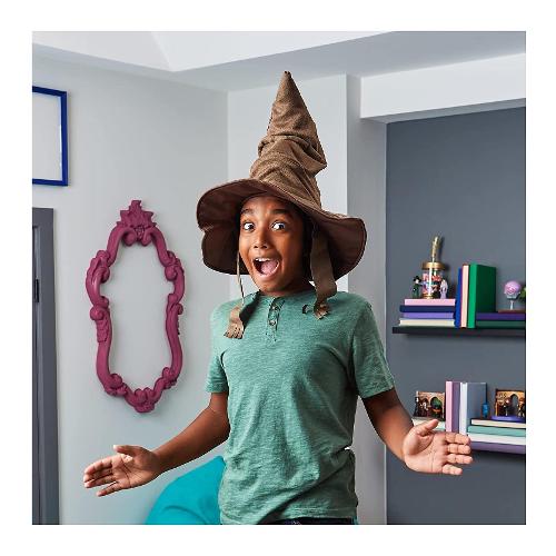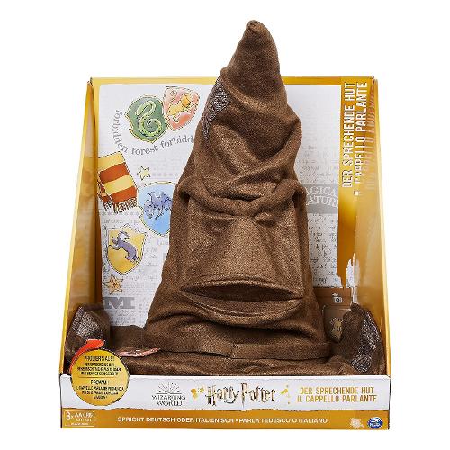 Scopri la tua casa di hogwarts indossando il cappello parlante! Con 15 frasi e movimenti facciali completi il cappello fa rivivere la cerimonia dello smistamento del primo anno di harry potter! Metti il cappello in testa o premi il pulsante della tesa per attivare le frasi del Cappello Parlante. Il Cappello Parlante sceglie casualmente la tua casa di Hogwarts: non sai mai quale otterrai! Mentre il Cappello Parlante parla, le sue sopracciglia, la testa e la bocca si muovono! Una volta che la tua casa è stata rivelata, usa la tua immaginazione per creare le tue avventure nel mondo magico. Parla tedesco e italiano, si può selezionare la lingua all'interno de cappello. Le batterie sono incluse.