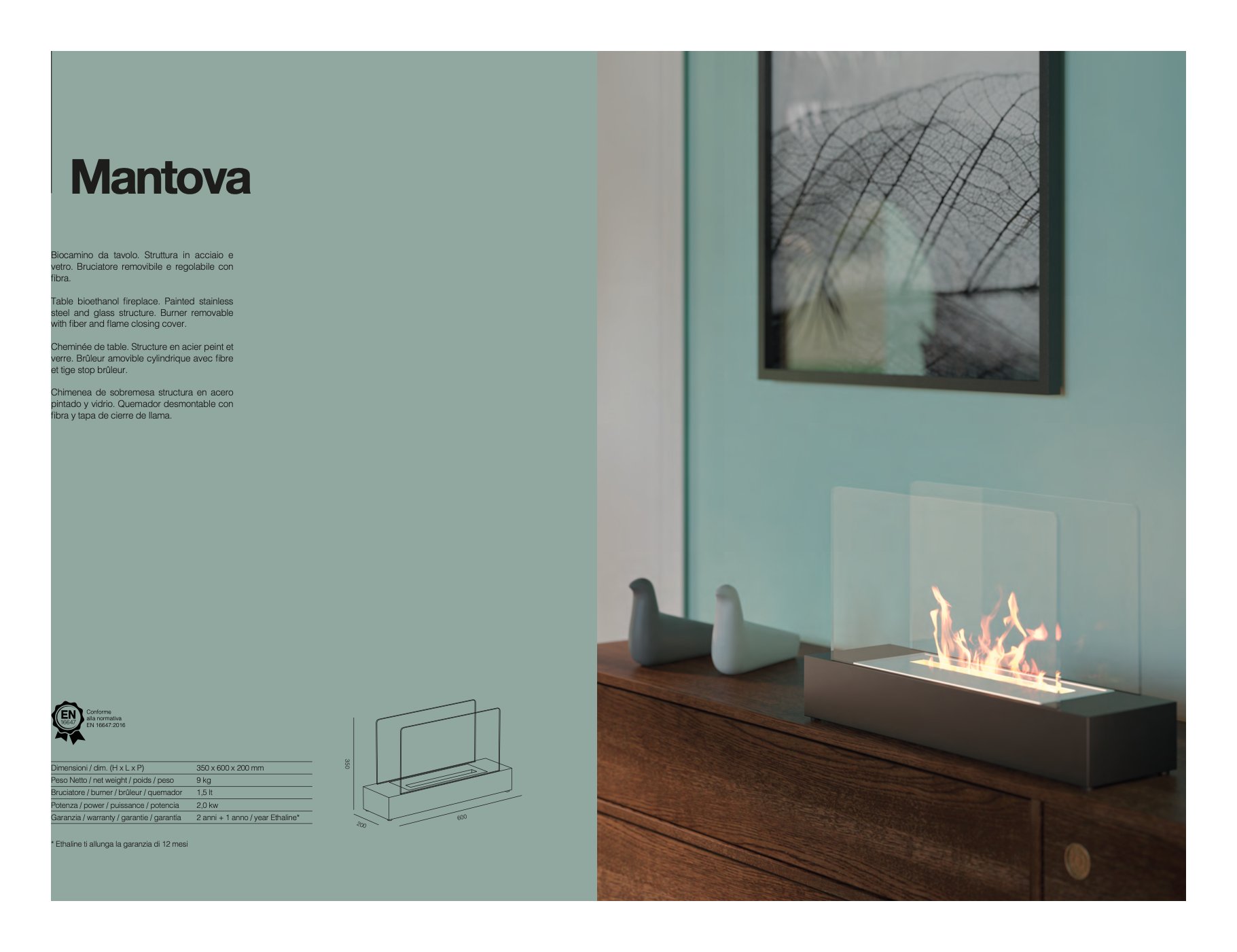 Biocamino 2kW MANTOVA Da Tavolo Black