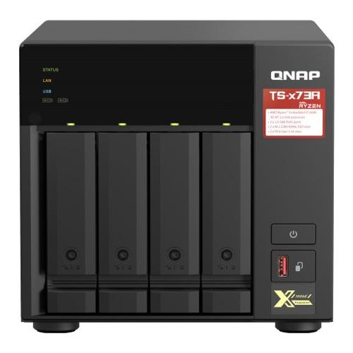 Dispone di un processore della serie AMD Ryzen™ V1000 V1500B quad-core che offre maggiori prestazioni di sistema con quad-core/8 thread e Turbo Core fino a 2,2 GHz. Il TS-473A dispone di due porte 2,5GbE RJ45 e due slot PCIe Gen 3 per l’implementazione flessibile delle reti 5GbE/10GbE. Due slot SSD M.2 NVMe per la tecnologia Qtier e la cache SSD per l’ottimizzazione continua dell'archiviazione. Il TS-473A supporta QTS e QuTS hero, che consentono agli utenti di cambiare in modo flessibile il sistema operativo in base ai propri requisiti.