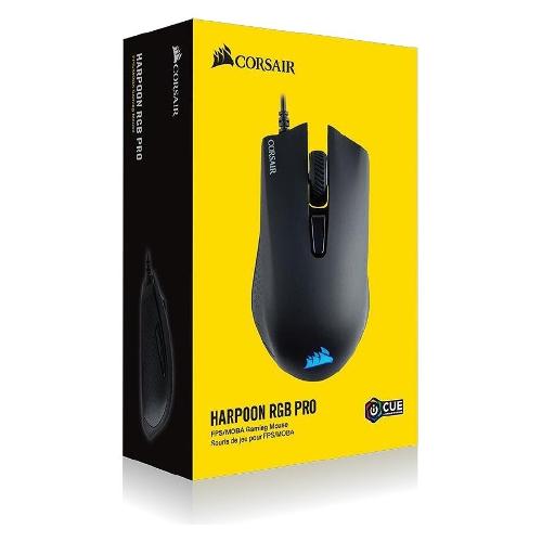 Il mouse gaming CORSAIR HARPOON RGB PRO presenta una comoda forma sagomata, un sensore da 12.000 dpi e un peso incredibilmente leggero di 85 g, per consentirti di giocare per ore con la massima comodità.
