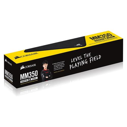 Goditi ore di lussuoso comfort di gioco sul tappetino per mouse da gioco in tessuto anti-sfilacciamento della serie Champion CORSAIR MM350, con una superficie nera solida di 320 mm x 270 mm progettata per i professionisti degli eSport e i giocatori competitivi