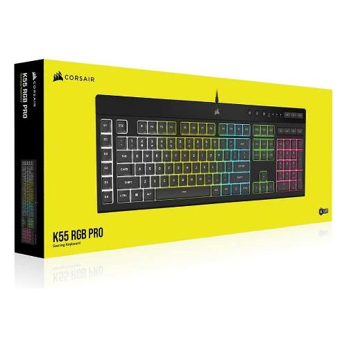La tastiera da gioco CORSAIR K55 RGB PRO illumina la tua scrivania con una retroilluminazione RGB dinamica a cinque zone e potenzia il tuo gioco con sei tasti macro dedicati.