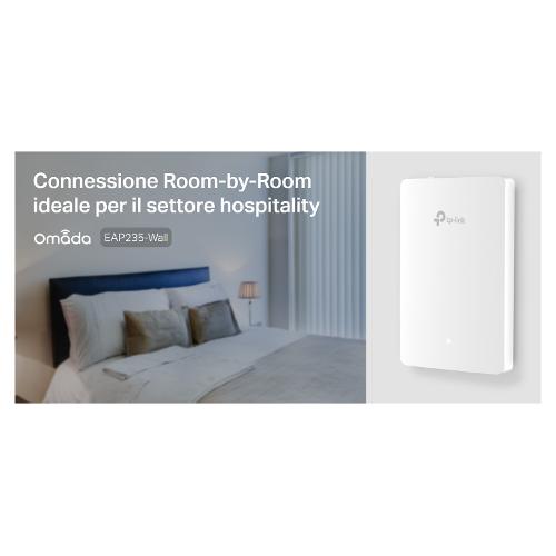 Connessione Room-by-Room ideale per il settore hospitality. E' dotato di supporto PoE 802.3af/802.3at che permette di installare il dispositivo e alimentarlo tramite cavo di rete.