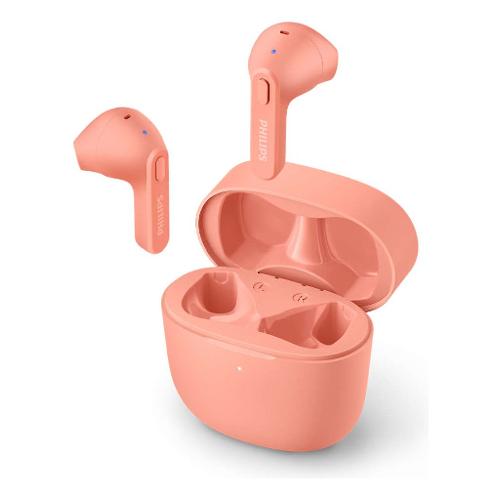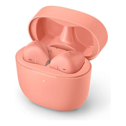 Queste cuffie true wireless resistenti agli schizzi d'acqua e al sudore sono perfette per essere portate sempre con te! Riponi la custodia di ricarica nella tasca dei tuoi jeans slim-fit preferiti. Gli auricolari si adattano all'orecchio esterno, così il condotto uditivo resta libero dai cuscinetti