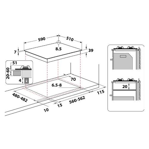 Piano cottura gas 4 zone Gmal 6422 Ixl Inox (60cm)