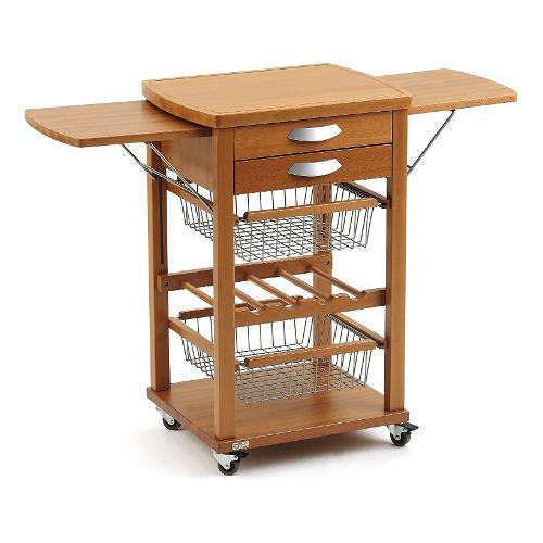 Tanti optional in poco spazio e grande piano di lavoro. Il modello Santiago è l'area attrezzata per eccellenza, potrai avere ovunque una piccola cucina dove cucinare ed avere le tue vivande sempre a portata di mano. Struttura in faggio massiccio, ampio tagliere centrale e tue taglieri apribili lateriale in listellare di faggio. Dotatodi cestelli in metallo verniciato a polveri, 2 ampi cassetti massiccio e ruote piroettanti in gomma anti traccia bloccanti. E’ un articolo davvero completo, il suo tagliere sorprende per l’estrema solidità, i cassetti ed i cestelli sono estremamente pratici così come il ripiano portabottiglie
