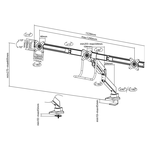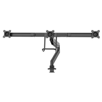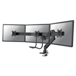 Questo braccio porta monitor Neomounts Select, modello NM-D775DX3BLACK consente di collegare tre schermi LCD/LED/TFT su di una scrivania con la modalità di fissaggio su piano attraverso un morsetto o vite centrale (entrambe sono incluse).