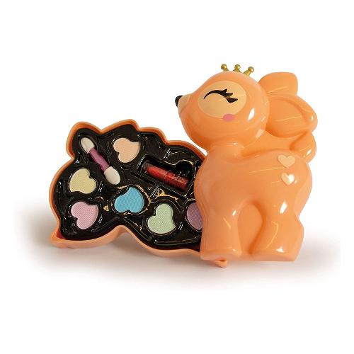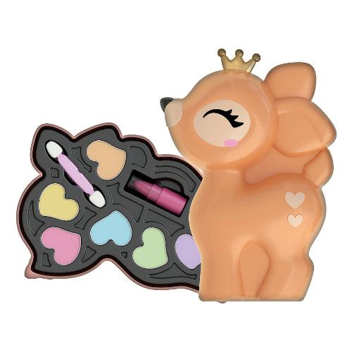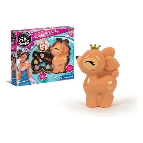 Un cofanetto make-up a forma di cerbiatto, dal formato compact per essere portato sempre con sé e con una palette dalle nuance tenui per un look naturale, sempre alla moda. Le bambine da sempre hanno tra gli interessi l’amore e la dedizione per i cuccioli. Per questo la linea crazy chic propone deliziose e funzionali trousse da viaggio ispirate al mondo love pets. La trousse è perfetta da portare nello zaino o nella borsa, per trasformare ogni momento in una occasione di gioco creativo e divertente da condividere con le amiche, ovunque si voglia. I trucchi del cofanetto sono testati per giocare in completa sicurezza. Le bambine potranno divertirsi con il make up seguendo tutorial online o le indicazioni delle amiche e della mamma. Il cerbiatto indossa una coroncina dorata così come gli altri cuccioli della linea, tutti da collezionare. Le forme delicate e lo sguardo tenero rendono la trousse preziosa e ambitissima dalle bambine. Le dimensioni contenute rendono la trousse perfetta da portare con sé ovunque. La palette dai colori luminosi ha 6 ombretti, 1 rossetto e un applicatore, per essere sempre trendy. I componenti e le sostanze inserite nel gioco sono sottoposti a severi controlli e test che ne certificano la qualità, per lasciare libere le bambine di esplorare, giocare e truccarsi senza rischi. Un gioco che stimola la creatività e la manualità delle bambine in campo beauty.