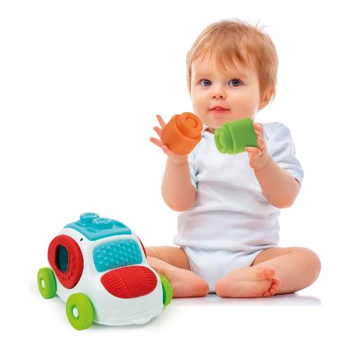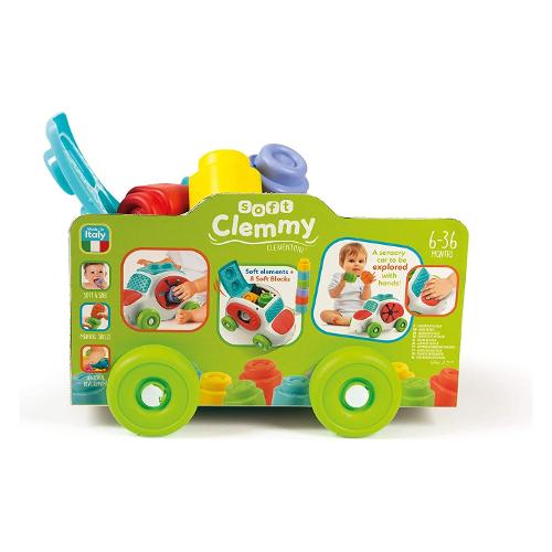 Un'innovativa macchinina con inserti morbidi, come i mattoncini clemmy, per un’esperienza di gioco stimolante e di scoperta sensoriale. Gli inserti morbidi sono da esplorare e da toccare, per scoprire le diverse forme e trame in rilievo. Stimola il tatto e la manualità. Il tetto dell'auto è una base di gioco per impilare i clemmy, si apre e diventa un pratico vano contenitore per riporre tutti i mattoncini. I finestrini laterali morbidi permettono di giocare ad inserire e prendere i mattoncini clemmy all'interno della macchinina. Il veicolo e i mattoncini sono lavabili, anche in lavastoviglie.