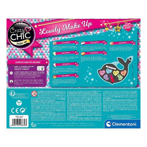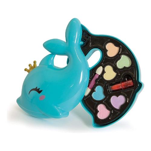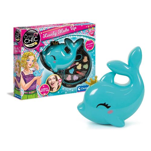 Un cofanetto make-up a forma di delfino, dal formato compact per essere portato sempre con sé e con una palette dalle nuance tenui per un look naturale, sempre alla moda. Le bambine da sempre hanno tra gli interessi l’amore e la dedizione per i cuccioli. Per questo la linea crazy chic propone deliziose e funzionali trousse da viaggio ispirate al mondo love pets. La trousse è perfetta da portare nello zaino o nella borsa, per trasformare ogni momento in una occasione di gioco creativo e divertente da condividere con le amiche, ovunque si voglia. I trucchi del cofanetto sono testati per giocare in completa sicurezza. Le bambine potranno divertirsi con il make up seguendo tutorial online o le indicazioni delle amiche e della mamma. Il delfino ha una coroncina d’oro come gli altri cuccioli della linea, tutti da collezionare. Le forme delicate e le tenere sembianze rendono la trousse originale e preziosa, ambitissima dalle bambine. Il formato compact rende la trousse perfetta da portare con sé e per giocare con le amiche. La palette dai colori vivaci ha 6 ombretti, 1 rossetto e un applicatore, per essere sempre alla moda. I componenti e le sostanze inserite nel gioco sono sottoposti a severi controlli e test che ne certificano la qualità, per lasciare libere le bambine di esplorare, giocare e truccarsi senza rischi. Un gioco che stimola la creatività e la manualità delle bambine in campo beauty.